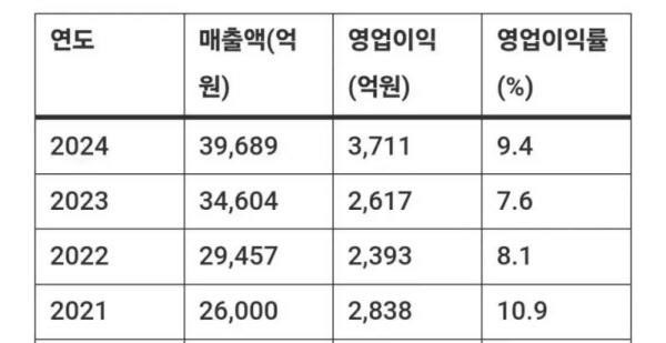 매출은 2022년 2조9457억원, 2023년 3조4604억원, 2024년 3조9689억원으로 매년 급증했다. 올해는 매출 4조원을 돌파할 것으로 전망된다. 지난해 영업이익은 3712억원을 기록했다. 다이소는 2013년 영업이익률이 1%에 불과했지만 지난해 9.4%로 급등했다. 1000원을 팔면 94원 이익을 냈다는 것이다. 동종업계인 이마트(0.16%), 쿠팡(1.46%)의 영업이익률을 기록한 것과 비교하면 크게 높은 수치다. 최근 유통 업계 영업이익률은 4%를 넘기가 어렵다.