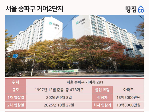 [슬기로운 경매생활] 서울 송파구 거여2단지 14억6190만원 낙찰…역대 최고가