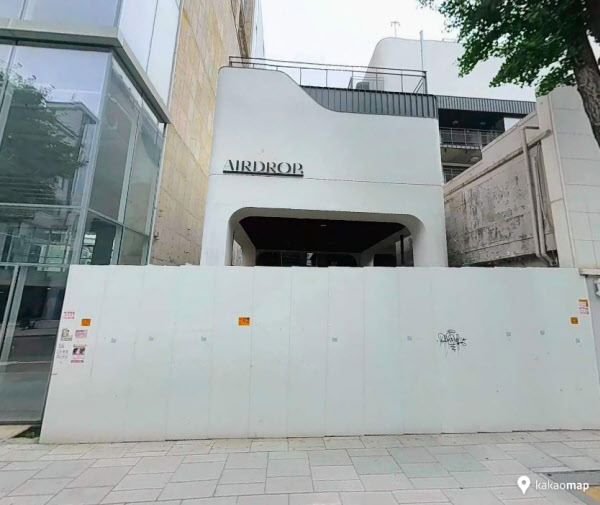 에어드롭 건물은 준공 직후 유명 브랜드 팝업 스토어로 활용했다. 명품 거래 플랫폼인 ‘파페치’와 영국의 드라이 진 브랜드 ‘봄베이 사파이어’ 등이다. 이후 층마다 ‘에어드롭’ 명칭을 붙인 카페·분식집·식당 등 다양한 매장이 들어섰다. 하지만 가로수길 상권이 침체하면서 지금은 모든 층이 텅 비어있다.
