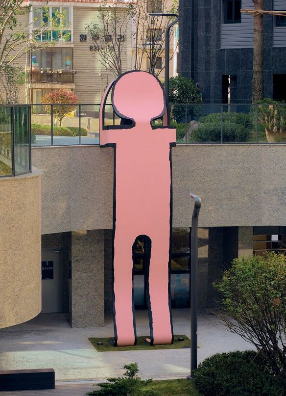 부동산 업계에 따르면 최근 ‘래미안 원페를라’는 단지 내 곳곳에 ‘장 줄리앙’ 작품 3개를 설치했다. 모두 사람 모양 철제 조형물로, 자세와 색상이 제각각이다.