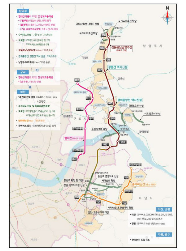 구리와 남양주시에는 지하철 8호선 연장선 별내선이 개통하면서 강남 접근성이 우수해졌다. 남양주와 구리를 거쳐 송파구 잠실까지 환승없이 30분이면 이동 가능하다. 이와함께 수도권광역급행철도 GTX-B 사업도 추진 중이다. 9호선 연장선 5단계 노선도 계획됐다. 강남으로 향하는 철도가 3개 노선이나 만들어지는 셈이다.