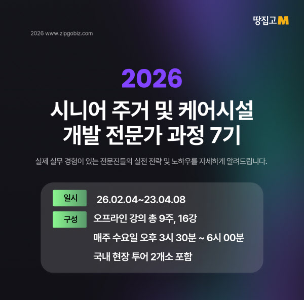 땅집고가 최근 늘어나는 시니어 부동산 개발 니즈에 맞춰 ‘시니어 주거 및 케어시설 개발 전문가 과정 (7기)’을 내년 2월 4일 개강한다.