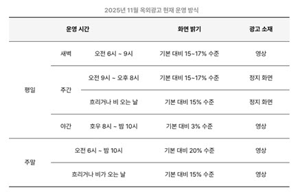 무신사는 공식 홈페이지 뉴스룸을 통해 올해 7월 ▲평일 주간 업무시간, 화면 밝기를 법적 허용치의 20%로 조정 ▲편집 전환이 많지 않은 영상 활용 ▲일몰부터 밤 10시까지는 화면 밝기를 3%로 조정 등 조치를 취했다고 밝혔다. 이어 성동구청과 미팅을 진행한 9월 이후에는 ▲흰색 배경 소재 사용 종료 ▲흐리거나 비 오는 날 화면 밝기를 기존 20%에서 15%로 조정 ▲평일 주간 업무 시간에는 정지된 화면만 사용하는 등 추가 조치도 진행했다는 설명이다.