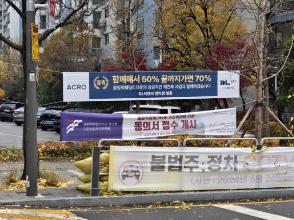 포스코이앤씨, DL이앤씨 등 대형 건설사들도 발 빠르게 움직이고 있다. 단지 주변에 현수막을 내걸며 관심을 보이고 있다. 일부 건설사는 동의서 접수에 참여한 주민들에게 기념품을 제공하고 있다.