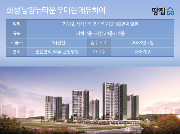 교육 인프라는 강점으로 꼽힌다. 단지 앞 새동초·새동중이 내년 3월 개교 예정이어서 입주 전부터 통학 여건이 마련된다. 이른바 초품아(초등학교 품은 아파트) 입지다. 남양뉴타운 내 학원가도 이미 자리 잡고 있어 교육 여건은 양호하다는 평가다.