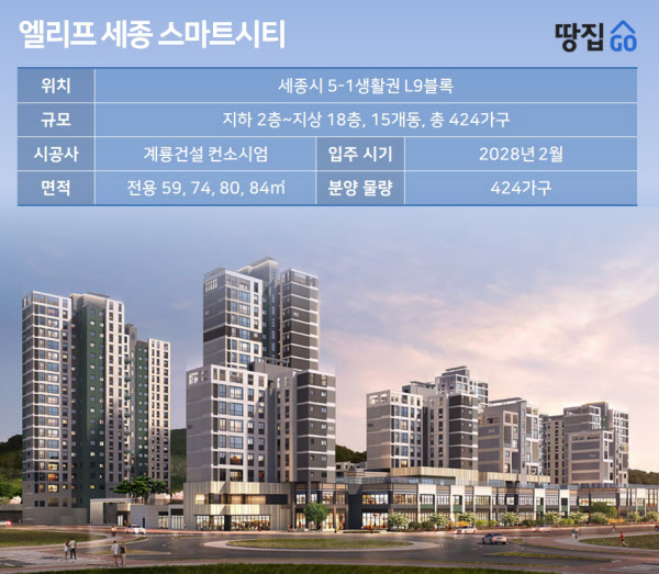 [땅집고] 오는 12월 세종시에 총 424가구 중소규모 단지인 ‘엘리프 세종 스마트시티’가 분양한다. 세종시 일대에서 스마트시티로 조성하는 5-1생활권에 들어서는 아파트다.