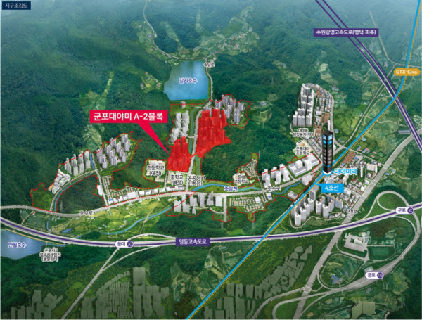 지난 7월 이 단지 북측에 있는 ‘대야미역 금강펜테리움 레이크포레’는 최고 20대1의 경쟁률을 기록하며, 최근 모든 주택이 완판했다. 59㎡ 분양가가 4억9000만~5억9000만원대, 84㎡는 7억300만원대로 A2블록보다 더 비쌌다.
