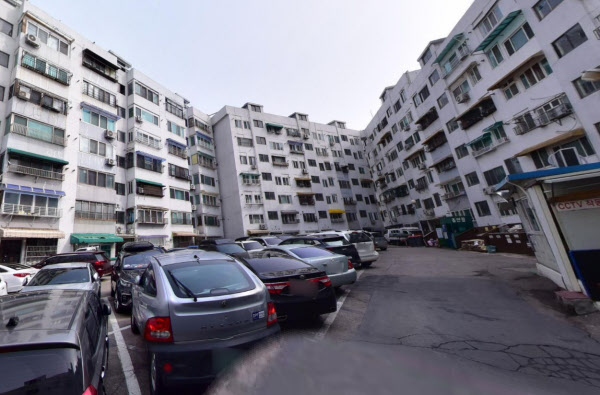 서울 지하철 6호선 안암역. 4번 출구로 나온 뒤 고려대를 지나 숨이 찰 정도로 경사가 제법 있는 언덕길을 걷다 보면 성북구 안암동 ‘대광아파트’에 도착한다. 아파트 출입구에 들어서면 먼저 아파트 2개동이 일렬로 서있다. 나머지 5개동을 보려면 경비실 건물 옆으로 나있는 마치 지하 동굴같은 진입로로 들어서야 한다. 깜깜한 통로를 지나면 아파트 5개동이 서로 마주보면서 오각형 요새를 이루고 있는 모습이다. 이 같은 배치로 생겨난 중정(中庭)같은 부지는 입주민들이 지상 주차장으로 쓰고 있다.