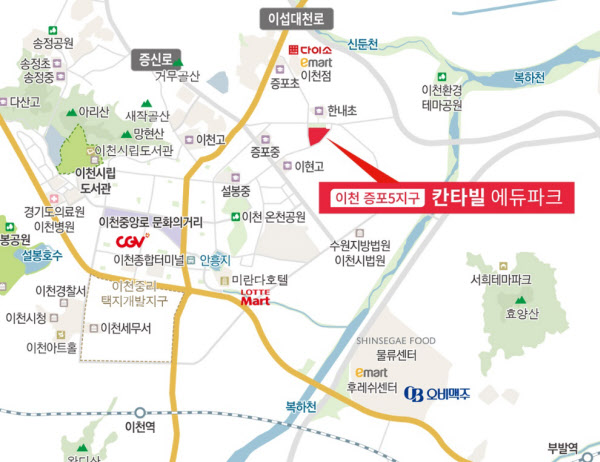 더구나 ‘이천 증포5지구 칸타빌 에듀파크’가 들어서는 증포동 일대는 기존 도심권에서 북쪽으로 약 1.5㎞ 떨어져 있다. 아직 논밭이나 저층 공장, 창고 건물이 많고 생활편의시설이 적어 인구 밀도 역시 낮은 편이다. 전철 경강선 이천역까지 걸어서 1시간, 차로 10분 정도 가야 한다. 이천에서 상대적으로 집값이 오르지 않고 주거 수요도 적은 편이다.