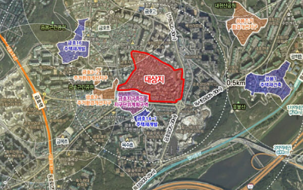 금호21구역 주택재개발정비사업은 지하 6층~최고 20층, 총 1242가구 아파트와 부대복리 시설을 함께 짓는 프로젝트다. 조합이 제시한 사업비는 6158억원이다.