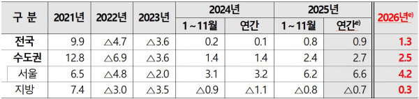 주택산업연구원 ‘2026년 주택시장 전망과 정책방향’ 발표