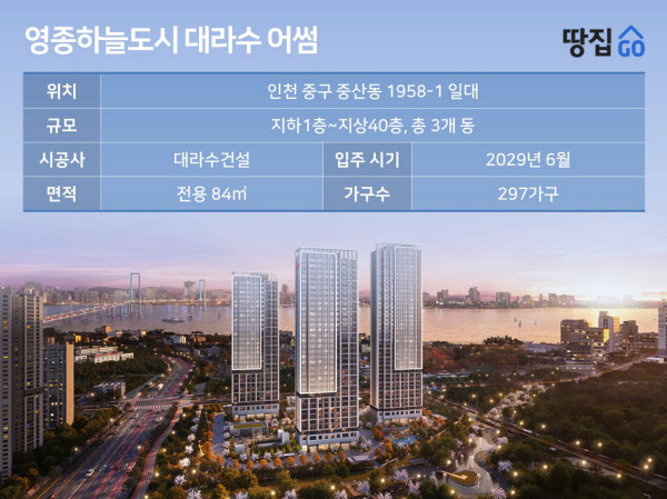 [땅집고] 인천 중구 중산동에서 ‘영종하늘도시 대라수 어썸’이 청약 일정에 돌입한다. 영종도 일대에서 보기 드문 40층 높이로, 초고층 스카이라인에서 보이는 파크·오션뷰를 강점으로 내세우고 있다. 다만 바로 옆에 49층 아파트와 개발부지를 끼고 있어 입주 후에도 조망이 유지될지는 불확실하다는 지적이 나온다.