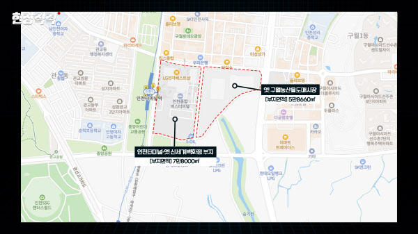 이어 구월농산물시장 부지도 롯데의 개발 구상에 편입됐다. 인천시는 2015년 롯데쇼핑 100% 자회사 ‘롯데인천타운’에 구월농산물시장 부지 5만8660㎡와 건물(연면적 4만4100㎡)을 3060억원에 넘겼다. 결과적으로 인천 도심 노른자 땅 13만㎡ 이상이 롯데의 개발 사업으로 묶인 셈이다.