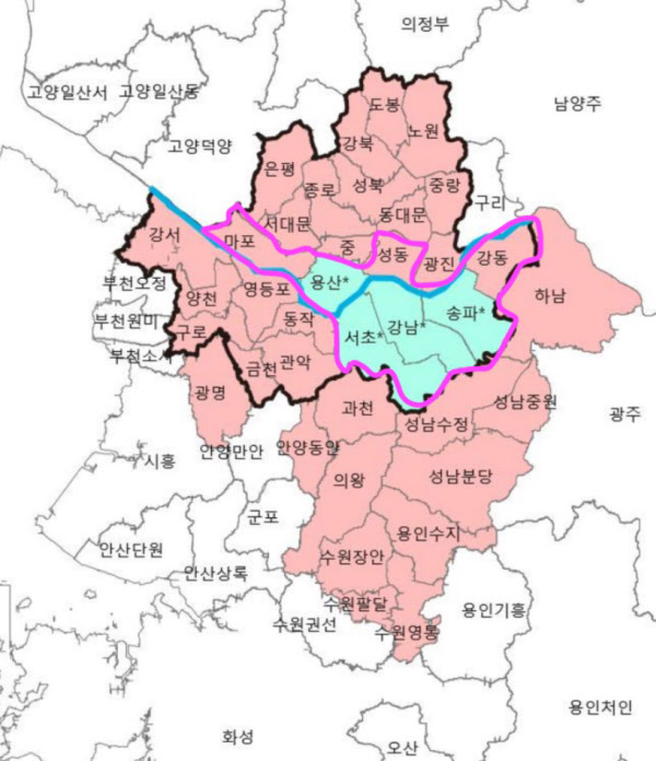 강남·서초·송파·마포·용산·성동·강동구 7곳 남나