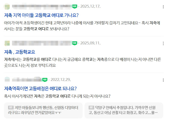 실제로 지역 온라인 커뮤니티에서는 지축지구 내 배정 고등학교 문의 글이 자주 목격된다. 한 주민은 “동산동이 그나마 가깝지만, 행신동까지 가는 경우도 있다”는 의견을 남겼다.