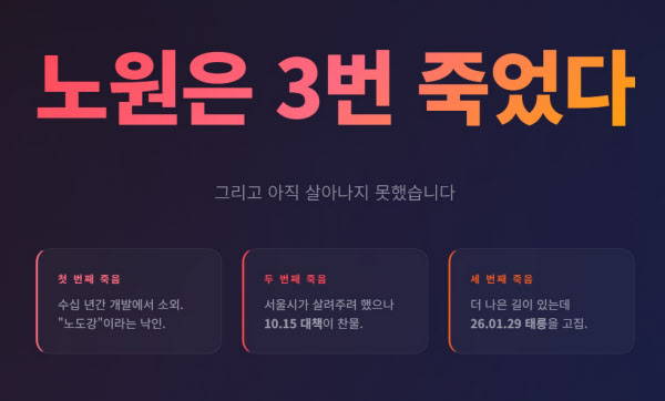 국내 최대 온라인 부동산 커뮤니티인 ‘부동산스터디’에선 이런 노원구 주민들의 울분을 담은 ‘노원은 세 번 죽었다’라는 글이 올라와 공감을 얻고 있다.