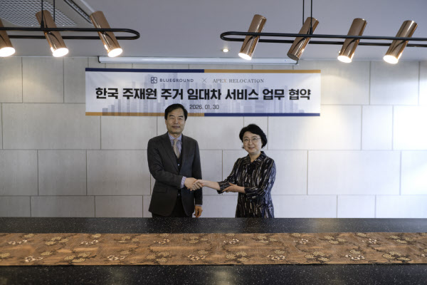 [땅집고] 글로벌 기업형 단기임대 운영사 블루그라운드코리아가 국내 최대 리로케이션(relocation) 기업 에이펙스와 지난달 30일 업무협약을 체결하고 외국 기업·기관 주재원을 겨냥한 단기임대 서비스를 확대한다고 4일 밝혔다. 외국인 주재원이 입국 후 바로 입주할 수 있는 숙소를 맞춤형으로 제공하고 입국 이후 정착 과정 전반까지 케어하는 B2B 주거 솔루션으로 사업 범위를 넓히겠다는 구상이다.