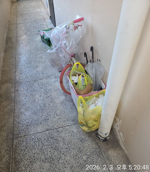 복도에 종량제 365일 방치하자
