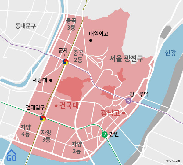 [땅집고] 서울 광진구 광장동은 1990년대와 그 이전에 조성된 택지지구입니다. 아파트 밀집 지역이면서도 비교적 안정적인 중산층이 모여 살던 동네였습니다. 생활 수준이 일정하게 유지되는 곳에서는 교육 수요가 자연스럽게 커집니다. 광장동도 마찬가지였습니다. 좋은 초·중·고가 자리 잡고 학원가가 따라붙으며 “한번 정착하면 대학 갈 때까지 큰 이동 없이 사는” 전형적인 학군지의 생활 패턴이 형성됐습니다.