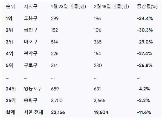 같은 기간 서울 아파트 매물은 5만6219건에서 6만2990건으로 12% 증가했다.