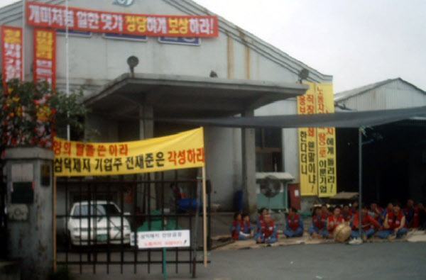 엎친 데 덮친 격으로 사내 노동조합이 어려운 회사 사정에 기름을 부었다. 2003년 노조가 강성으로 꼽히는 민주노총에 가입하면서 노사 갈등이 심화한 것. 당시 노조가 공장 마당에 텐트를 치고 45일에 걸친 고강도 파업 시위를 진행하면서 공장 가동이 전면 중단됐다고 전해진다.