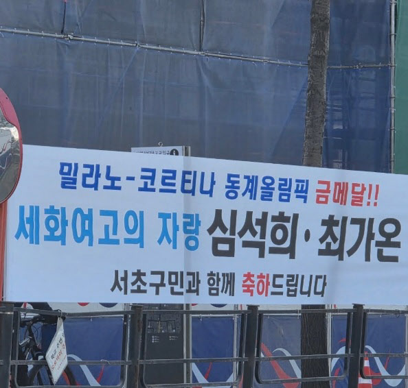 지난 22일 2026 밀라노-코르티나담페초 동계올림픽이 폐막한 가운데 최근 온라인 커뮤니티에서는 서울 서초구 반포동 ‘래미안 원펜타스’ 단지에 걸린 현수막이 화제가 됐다. 2026 밀라노-코르티나담페초 동계올림픽 스노보드 하프파이프에서 금메달을 획득한 최가온 선수(18)를 축하하는 내용이었다. 최가온 선수 가족이 거주하는 것으로 알려진 래미안 원펜타스는 전용면적 84㎡는 최고 41억원에 거래됐다. 전용245㎡는 최고 150억원을 호가하는 것으로 알려져 있다