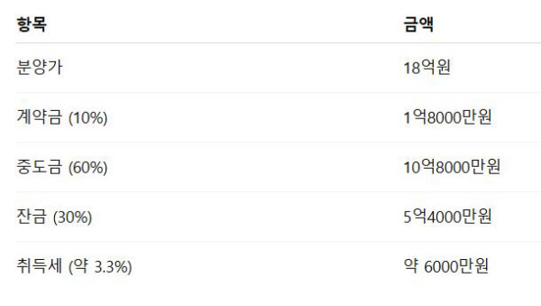 그런데 문제는 잔금 납부 방식이다. 잔금 대출의 경우 분양가가 15억 초과~25억원 이하의 경우 주택담보대출 한도가 4억원으로 제한된다. 중도금 대출 40% 약 7억2000만원을 받았을 경우 3억2000만원을 갚아야 한다는 이야기다.