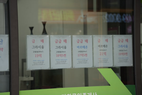 [땅집고] 지난 11일 오후, 수도권지하철 5호선 상일동역 인근 상가단지. 공인중개업소 유리창마다 ‘급매’, ‘급급매’ 전단지가 나붙어 있다. 강남 3구(강남ㆍ서초ㆍ송파)에서 시작한 아파트값 하락세가 강동구까지 번지며 동남권 전체 집값이 조정 국면에 진입했다. 그동안 견조한 흐름을 보이던 강동구 집값은 지난해 2월 이후 1년 1개월(56주) 만에 하락 전환했다. 지역 시세를 견인하던 이른바 ‘대장 아파트’ 호가조차 한 달 사이에 최대 3억원 가까이 내려 앉았다.