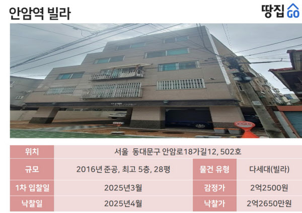 안암역 5층짜리 빌라…감정가 101% 낙찰? 시세 대비 저가 매입