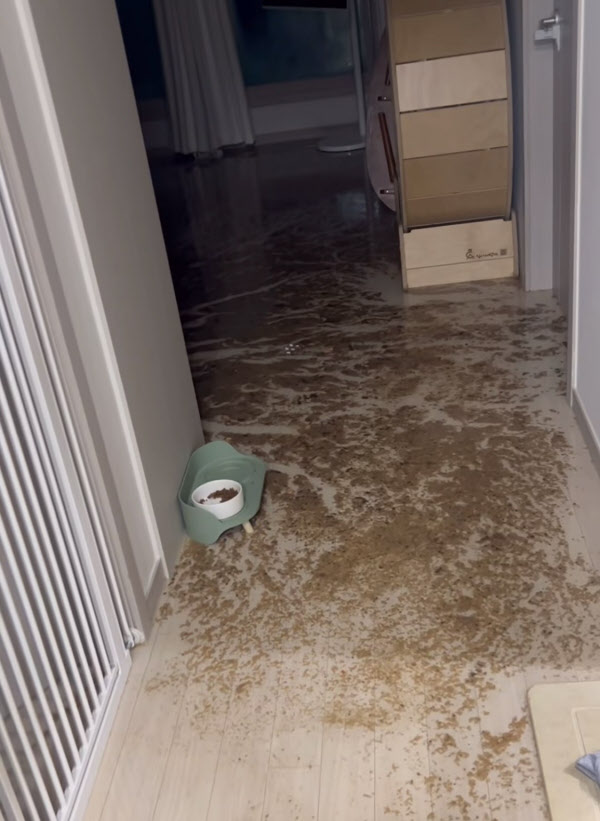 그런데 준공 2년도 채 안된 시점에 이 행복주택에서 부실 시공으로 인한 대형 역류 사고가 발생한 것으로 확인됐다. 설 연휴 직전인 올해 2월 15일 저층 입주자 A씨의 집 싱크대에서 솟아오른 오물·오수가 주택 전체를 뒤덮으면서 침수 피해를 입은 것. 현장을 촬영한 영상에 따르면 싱크대부터 시작된 역류물이 거실, 침실, 신발장까지 황갈색 액체와 찌꺼기가 퍼져있는 데다 악취가 풍겨 더 이상 주거하기는 불가능한 수준이다.
