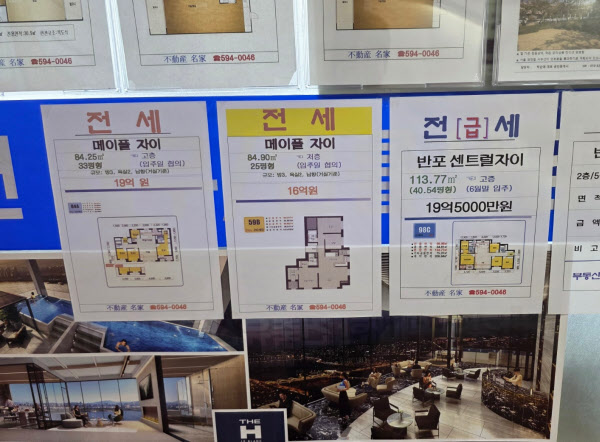 [땅집고] 지난 25일 오후 찾은 서울 서초구 반포동. 지하철 9호선 신반포역부터 고속버스터미널역으로 이어지는 신반포로 대로를 따라 수많은 부동산 중개업소가 늘어서 있지만, 정작 문을 열고 들어서는 손님은 찾아보기 힘들다. 중개인마다 책상 앞에 앉아 묵묵히 모니터를 응시하는 모습만 눈에 띈다. 유리창에 붙은 전세 매물 목록을 보니 대부분이 신축으로 보증금 15억원을 상회하는 고가 단지 위주였다. 반면 반포동 일대에서 전세 거래가 활발했던 10억원대 미만 구축 아파트 매물은 자취를 감춘 상태였다.