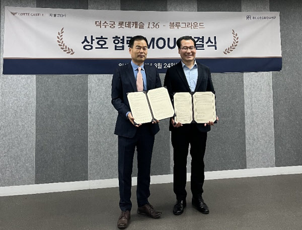 블루그라운드코리아는 지난 24일 서울 중구 순화동에 들어서는 ‘덕수궁 롯데캐슬 136’과 업무협약을 맺고 단지형 위탁운영 모델을 적용하기로 했다고 26일 밝혔다. 운영 대상은 공동주택 102가구와 오피스텔 34실이다.