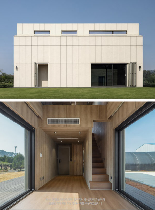 공식 홈페이지에 따르면 ‘스마트코티지’는 크게 1층짜리 ‘모노’ 모델과 2층 높이 ‘듀오’ 모델로 나뉜다. 모노 중 ‘코어27’은 27㎡(8평)짜리 원룸형으로 부가세를 포함해 1억원이면 살 수 있다. 좀 더 면적이 넓은 ‘코어54’는 거실 겸 주방과 욕실, 침실 2개로 구성하는 54㎡(16평)이며 가격은 1억8000만원으로 책정됐다. 2층짜리 듀오 모델중에선 ‘맥스45’가 가장 널찍하다. 1층이 29.4㎡(9평), 2층이 16㎡(5평)으로 3억9000만원으로 내 집 마련할 수 있다.