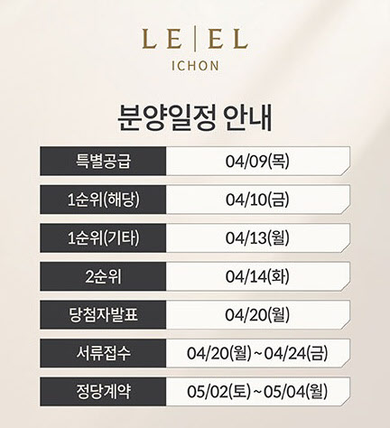 청약 일정은 오는 4월 9일 특별공급을 시작으로 10일 1순위 해당 지역, 13일 1순위 기타 지역 접수를 차례로 진행한다. 당첨자 발표는 4월 20일로 예정되어 있으며, 정당 계약은 5월 2일부터 4일까지 사흘간 체결된다.