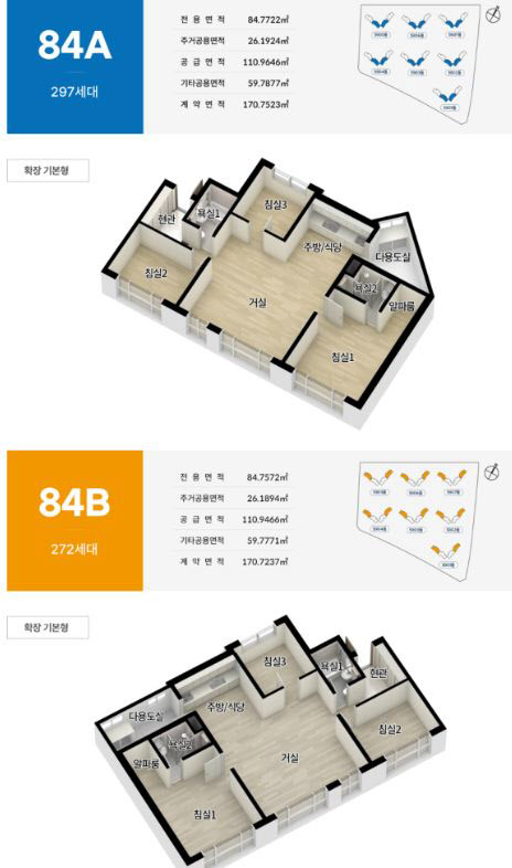 설계 논란도 적지 않다. 이 단지는 84㎡A·B 모두 3베이 판상형 구조로 설계됐다. 최근 수도권 신규 분양 단지들이 4베이 구조를 기본으로 채택하는 흐름과 비교하면 상품성이 떨어진다는 지적이 나온다. 온라인 커뮤니티를 중심으로 일부 수요자들 사이에서는 “채광과 공간 활용이 비효율적이다”, “90년대 아파트 수준의 평면”이라는 혹평까지 나오고 있다.