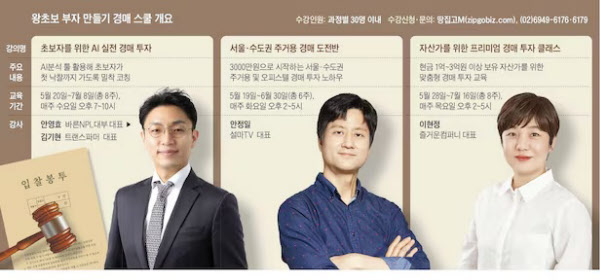 수강생 자금 여력과 선호하는 물건에 맞춘 실전형 강의도 마련했다. 실전 경력 20년 넘는 업계 찐고수들이 강사로 나선다.
