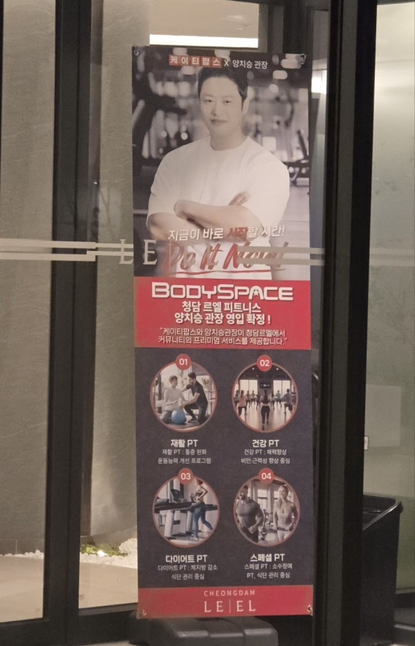 최근 온라인 부동산 커뮤니티에선 서울 강남구 청담동 ‘청담 르엘’ 아파트 단지 내 커뮤니티 시설 출입구에 양치승 트레이너의 얼굴이 붙어있는 안내판을 촬영한 사진이 화제를 모으고 있다. 이 안내판에는 ‘청담 르엘 피느시트, 양치승 관장 영입 확정!’, ‘케이티팝스와 양치승 관장이 청담 르엘에서 커뮤니티의 프리미엄 서비스를 제공합니다’라는 등 문구가 기재돼있다.