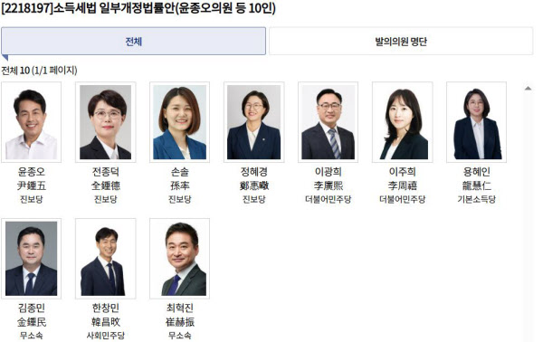 이번 개정안에는 전종덕·손솔·정혜경 진보당 의원과 이광희·이주희 더불어민주당 의원, 용혜인 기본소득당 의원, 한창민 사회민주당 의원, 김종민·최혁진 무소속 의원 등이 공동 발의자로 참여했다.