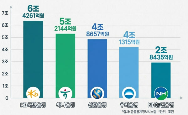 농협은행 충전이익에서도 가장 낮은 수준이다. 영업이익에서 판매관리비를 제외한 뒤 부실을 대비한 대손충당금 적립 전 금액을 뜻한다. 지난해 각 은행은 홍콩 ELS, LTV 관련해 수천억원대 과징금이 부과된 터라 충전이익이 영업력을 판단할 수 있는 지표로 볼 수 있다.