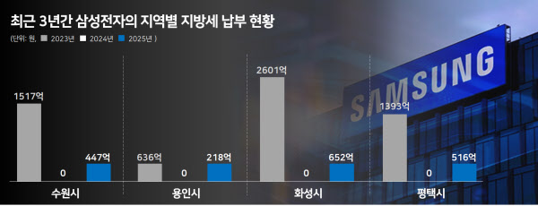 반면, 실적이 회복하자 세수도 반등했다. 2024년 삼성전자 영업이익은 32조7300억원을 기록했고, 이를 기반으로 2025년에 납부된 지방세는 수원 447억원, 용인 218억원, 화성 652억원, 평택 516억원 수준으로 집계됐다. 불과 1년 만에 ‘0원 쇼크’에서 수백억원 규모로 회복된 것이다.