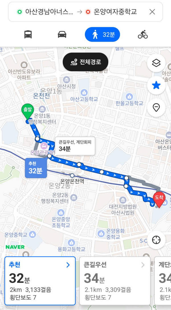 반면 중·고등학교로 올라갈수록 통학 여건은 크게 떨어진다. 특히 여학생들이 힘들 것으로 보인다. 남중인 온양중은 단지로부터 직선 1km 정도 떨어져 있지만, 여학생이 통학하는 신정중·온양여중·온양여고 등은 약 2km 이상 떨어져 있어 걸어서 30분 이상 걸리는 만큼 도보 통학이 쉽지 않다는 평가다.