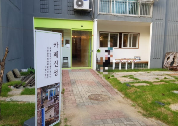 단지 내 카페명은 아파트 이름을 딴 ‘카페 신성’. 출입구와 가장 가까이 배치한 203동 중 1층 3~4호 라인에 카페를 마련해뒀다. 최근 준공한 신축 아파트마다 수영장, 헬스장, 스카이라운지 등 입주민 전용 커뮤니티 시설을 다양하게 마련하고 있는 추세지만 1990년~2000년대 들어선 아파트는 대부분 이런 공간이 부족하다. 이 점을 보완하기 위해 둔촌미소지움2차 관리사무소와 집주인들이 의견을 모아 1층 공간을 개조해 입주민 전용 시설인 카페를 만들게 된 것으로 추정된다.