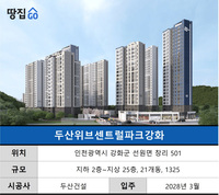 - [디스아파트] 강화군 최대 규모 신축 대단지 분양, 인근 시세보다 1억원 이상 높은 분양가 | 두산위브센트럴파크강화 [땅집고] 인천 강화군 선원면 창리 501 일원에 ‘두..