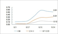 서울발(發) 아파트 값 급등세가 9·13 부동산 대책 발표를 앞두고 수도권 각지로 더욱 확산하고 있었던 것으로 조사됐다. 이 지역들 상당수는 규제 대상 지역이 아니어서..
