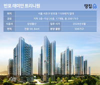 [땅집고] 최대 30억원의 시세 차익을 거둘 수 있는 서울 서초구 반포동 ‘반포 래미안 트리니원’ 일반공급 청약에 5만명 이상이 접수했다. 대출 규제로 인해 최소 25억..